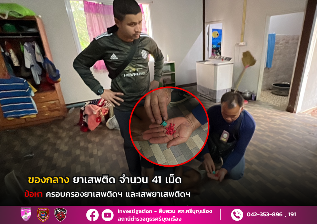 รายที่ 3 นายสมชาย อายุ 27 ปี ชาวตำบลยางหล่อ อำเภอศรีบุญเรอืง จับกุมยาบ้า จำนวน 41 เม็ด