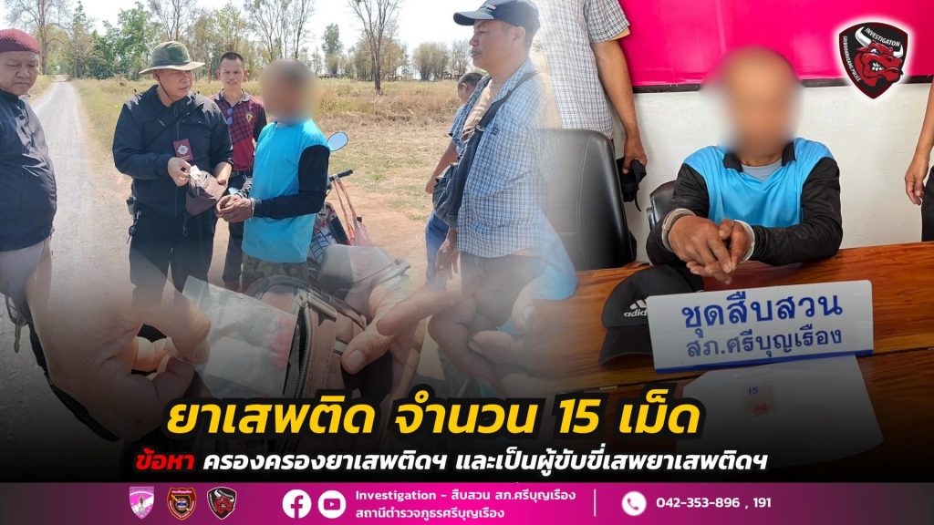 สภ.ศรีบุญเรือง จับกุมยาบ้ารวม 165 เม็ด 11 มีนาคม 2568 โดย admin / ข่าวประชาสัมพันธ์ 10 มีนาคม 2568 สภ.ศรีบุญเรืองจับกุมผู้ต้องหา 2 ราย ยาบ้ารวม 165 เม็ด FacebookFacebookXXLINELine
