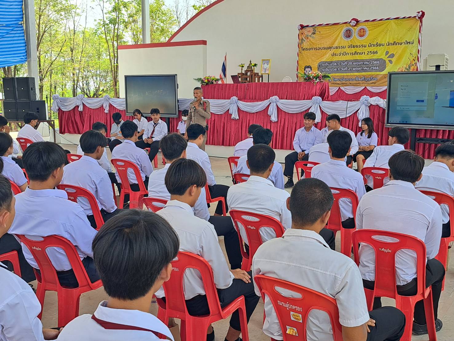 5 มิถุนายน 2566 พ.ต.ท. นรินทร์ โคตรคำจันทร์ รอง.ผกก.ป พ.ต.ต.ชวิทย์ นามวาด สวป. ได้ประชุมแถว ข้