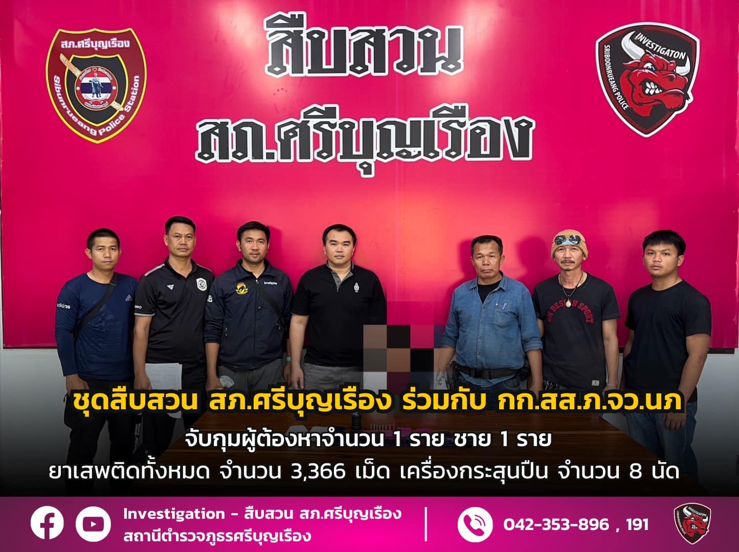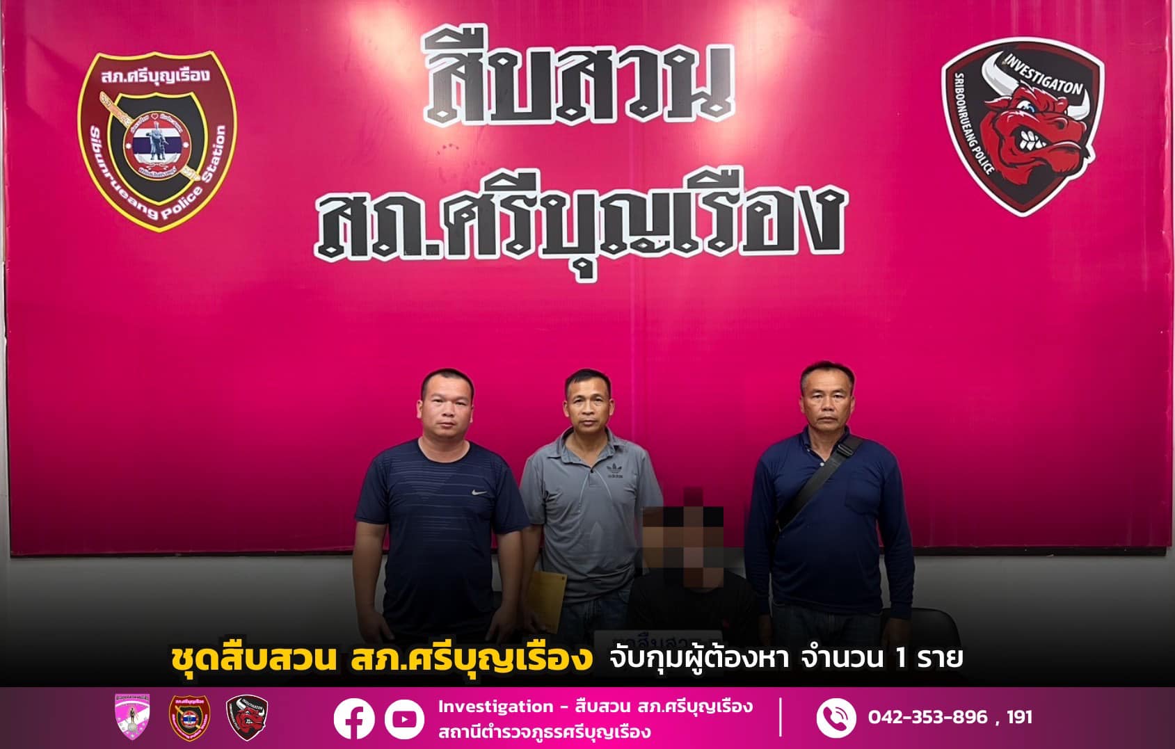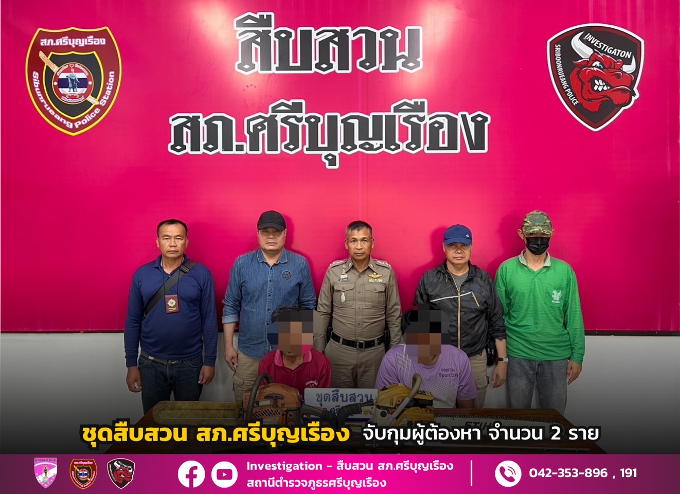 ชุดสืบสวน สภ.ศรีบุญเรืองได้ร่วมกันจับกุมตัวจำนวน 2 ราย ดังนี้1.นายสุนทร อายุ 55 ปี สัญชาติ ไทย ที่อย
